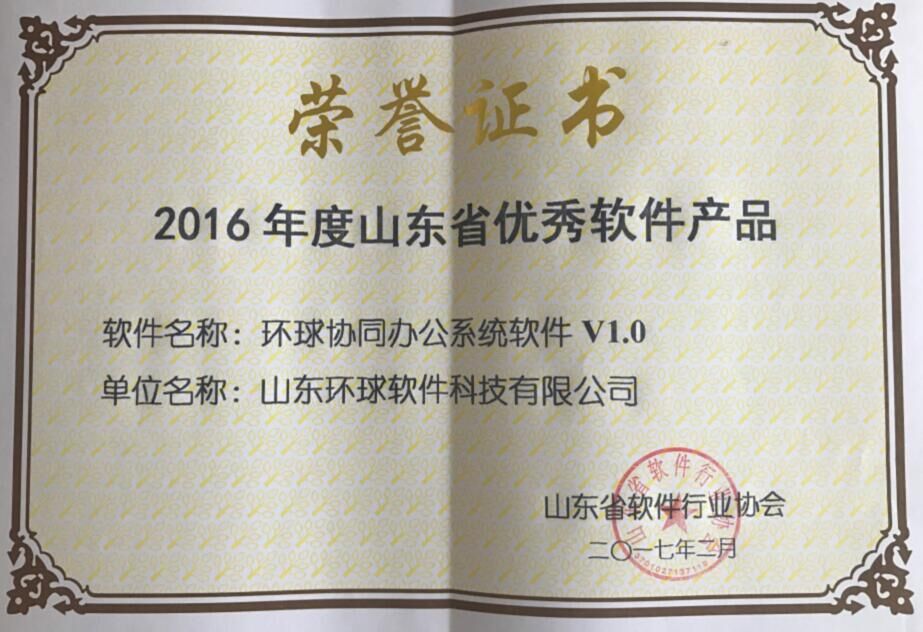 近日,山東省軟件行業(yè)協(xié)會發(fā)布了“關(guān)于表彰2016年度山東省優(yōu)秀軟件產(chǎn)品、 優(yōu)秀軟件企業(yè)和優(yōu)秀軟件企業(yè)家的決定”。山東環(huán)球軟件股份有限公司(以下簡稱“環(huán)球軟件”)入選“山東省優(yōu)秀軟件企業(yè)”,公司自主研發(fā)的產(chǎn)品“環(huán)球協(xié)同辦公系統(tǒng)軟件V1.0”和“環(huán)球區(qū)域衛(wèi)生信息化平臺軟件V1.0”入選“山東省優(yōu)秀軟件產(chǎn)品”。