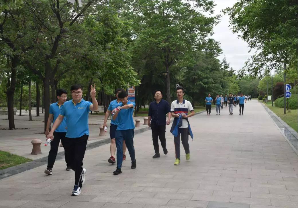 公司辦公室提前準(zhǔn)備、統(tǒng)籌安排,早上大家在彌河公園集合。清晨的公園人煙稀少,放眼望去,林地叢生,碧翠環(huán)抱,萬(wàn)物生機(jī)勃勃,巨石聳立在廣場(chǎng)中央,與周圍森林構(gòu)成了一幅山水優(yōu)美的畫卷。
