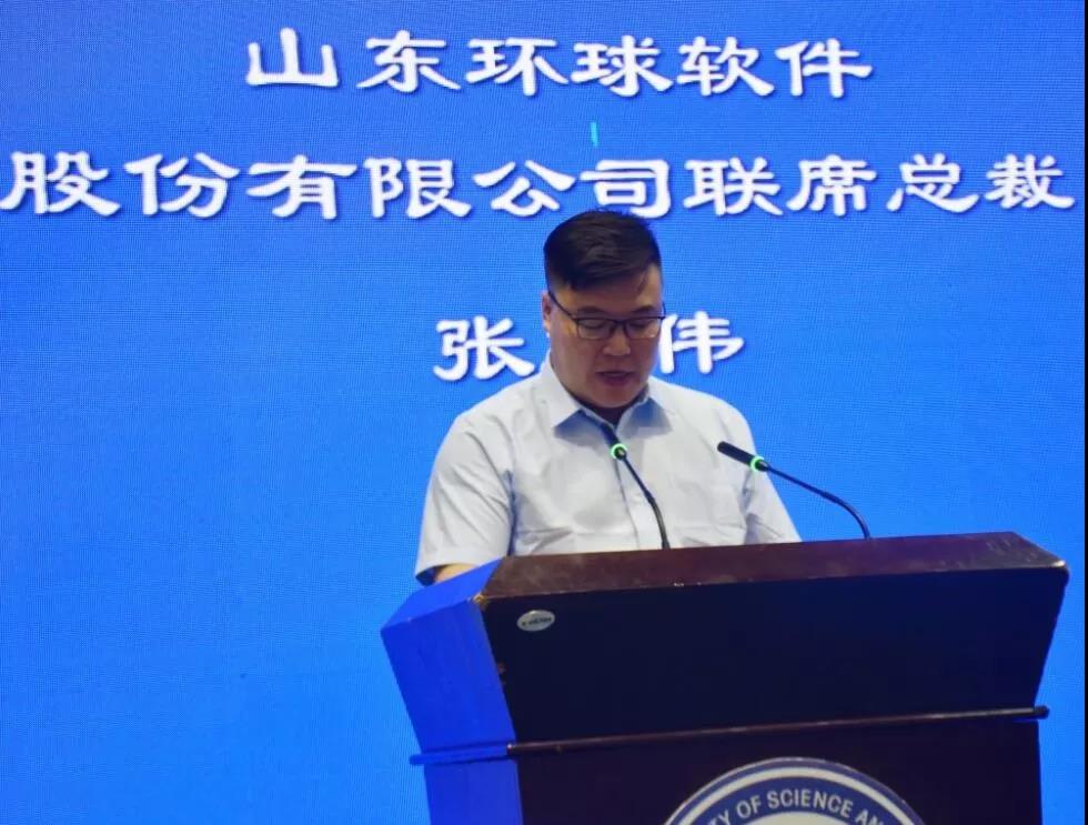 山東環(huán)球軟件股份有限公司聯(lián)席總裁張立偉作為本次競(jìng)賽的冠名商發(fā)表致辭,闡述了環(huán)球軟件校企合作情況以及在建筑信息化領(lǐng)域的深入發(fā)展情況,同時(shí)感謝大賽組委會(huì)提供了參與、學(xué)習(xí)和交流的寶貴機(jī)會(huì)。