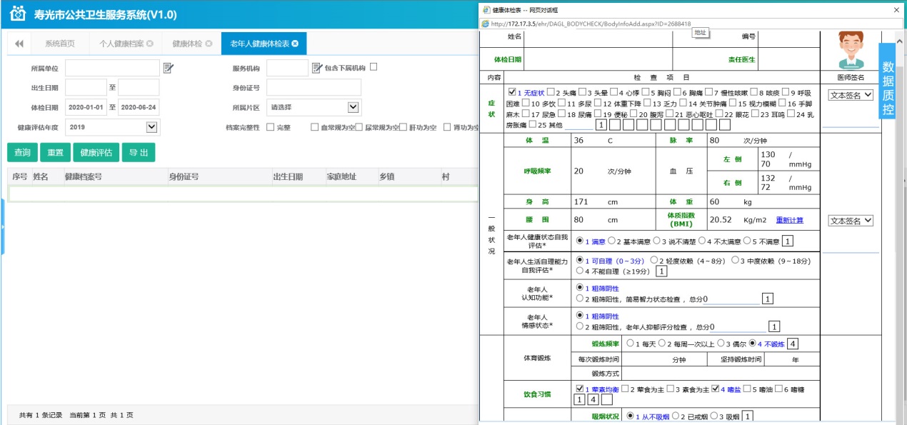 近日,壽光市古城街道、孫集街道、田柳鎮(zhèn)、臺頭鎮(zhèn)等陸續(xù)開展65歲以上老年人查體工作。眾所周知,為全市65歲及以上老年人免費查體是國家基本公共衛(wèi)生服務(wù)項目的重要內(nèi)容,也是政府的民生實事,自實施以來廣受好評。但該項工作存在工作任務(wù)重、環(huán)節(jié)多、錄入信息容易出錯等問題,為從根本上解決以上問題,保證國家基本公共衛(wèi)生服務(wù)項目快速有效順利推行,提高老年人健康查體時效性、準確度及滿意度,壽光市衛(wèi)健局聯(lián)合環(huán)球軟件研發(fā)了老年人健康查體系統(tǒng),助力老年人查體工作開展。