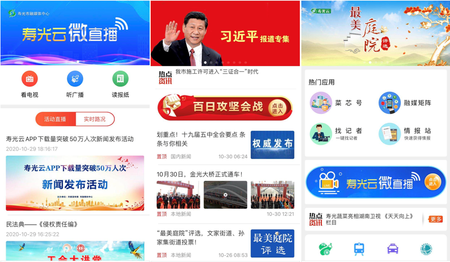 為加快推廣應(yīng)用工作,“壽光云”APP先后與華為、小米、vivo、oppo、蘋果等應(yīng)用商城進(jìn)行對接,全面覆蓋了安卓和iOS兩大手機(jī)系統(tǒng)應(yīng)用商城,滿足了不同手機(jī)用戶的下載需求。針對各微信公眾號“各自運(yùn)營、分散管理”的現(xiàn)狀,“壽光云”APP開設(shè)“菜芯號”版塊,把各鎮(zhèn)街區(qū)、部門單位和企業(yè)公眾微信號全部納入,加強(qiáng)集中統(tǒng)一管理。目前已入駐微信公眾號114個(gè),從根本上做到了政務(wù)宣傳“一個(gè)矩陣”發(fā)聲。平臺(tái)先后與婦聯(lián)、團(tuán)委、衛(wèi)健局、教育局等部門單位開辟專欄,開展“最美庭院”“農(nóng)村好青年”等各類投票評選活動(dòng)10多場次,開展微直播121場次。其中,“援鄂英雄凱旋”直播收看達(dá)36.68萬人次,壽光召開發(fā)展大會(huì)時(shí)同時(shí)有12.34萬人在線觀看。
