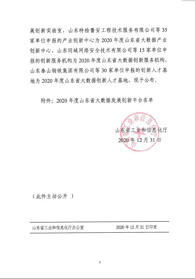 12月31日,山東省工業(yè)和信息化廳發(fā)布了《關(guān)于公布2020年度山東省大數(shù)據(jù)發(fā)展創(chuàng)新平臺的通知》,經(jīng)過單位申報(bào)、市局推薦、專家評審、網(wǎng)上公示等程序,環(huán)球軟件成功獲批2020年度山東省大數(shù)據(jù)產(chǎn)業(yè)創(chuàng)新中心。