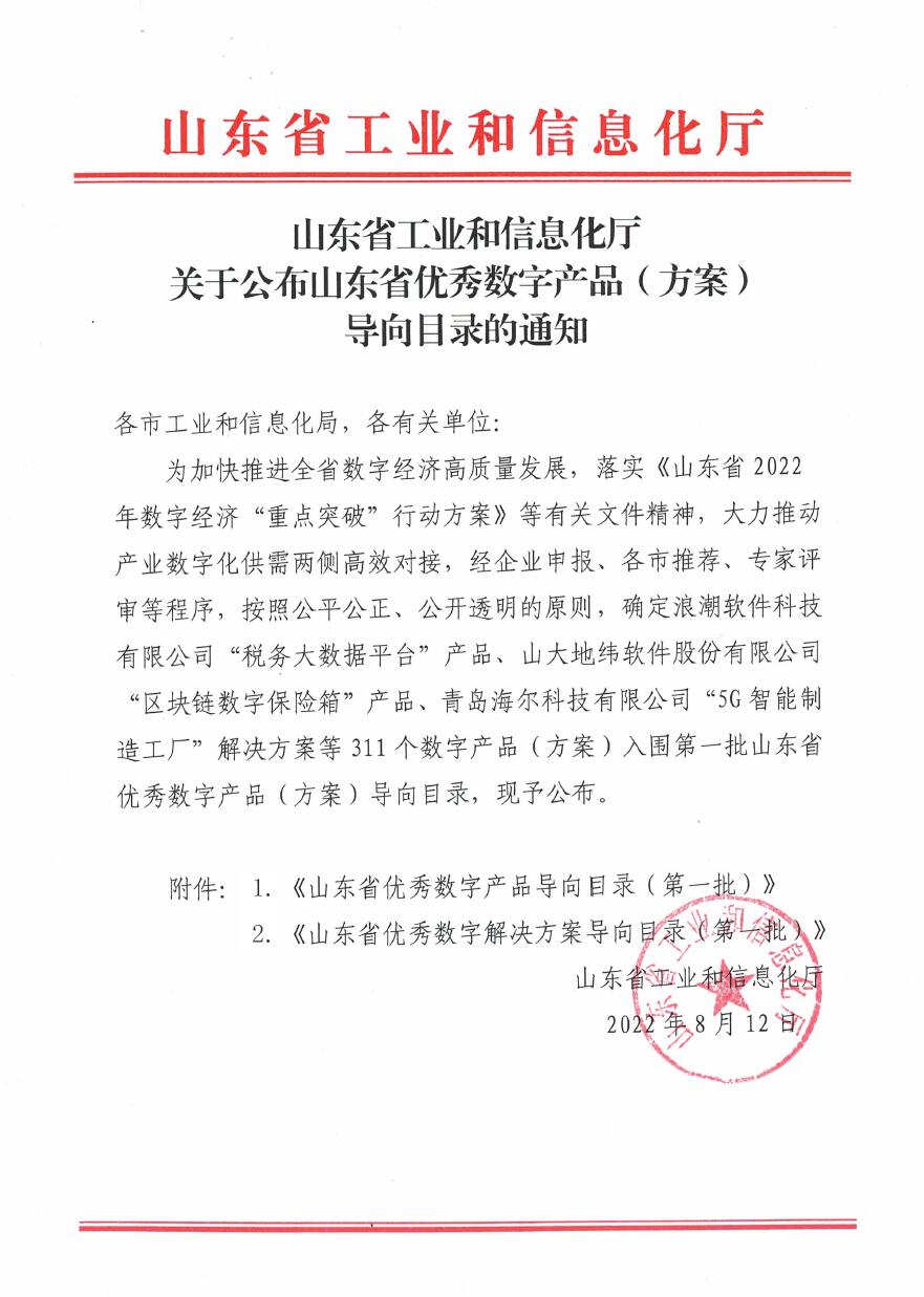 環(huán)球軟件兩項成果成功入選山東省優(yōu)秀數(shù)字產(chǎn)品(方案)