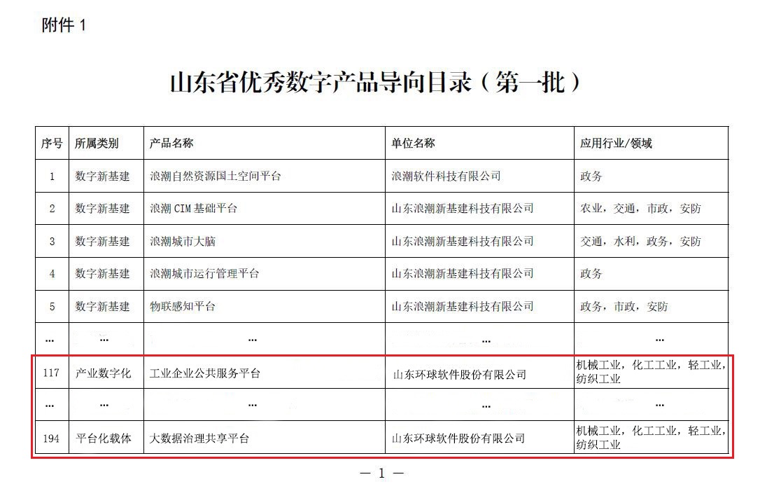 近日,山東省工業(yè)和信息化廳公布了《山東省優(yōu)秀數(shù)字產(chǎn)品(方案)導(dǎo)向目錄(第一批)》名單。山東環(huán)球軟件股份有限公司申報的“工業(yè)企業(yè)公共服務(wù)平臺”、“大數(shù)據(jù)治理共享平臺”兩項成果,成功入選。