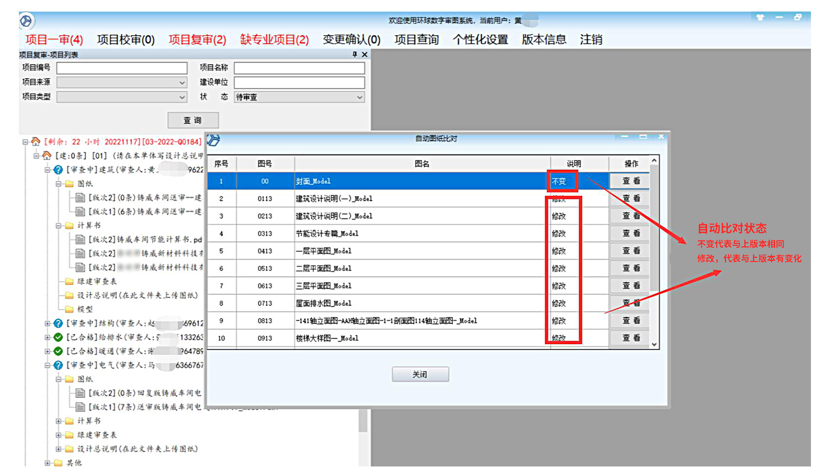 環(huán)球軟件“數(shù)字化審圖平臺(tái)”依托云服務(wù)器,將傳統(tǒng)的“人帶圖紙跑”轉(zhuǎn)變?yōu)椤皥D紙?jiān)谠粕献摺?,?shí)現(xiàn)對(duì)勘察、建筑、結(jié)構(gòu)、電氣、給排水、暖通等專業(yè)施工圖設(shè)計(jì)文件“云上一站式”審查,圖紙上傳、受理、審查不再受時(shí)間、空間限制。平臺(tái)實(shí)現(xiàn)了從項(xiàng)目勘察、設(shè)計(jì)、施工、審批、監(jiān)管到檔案管理的數(shù)字化交付、管理全過(guò)程留跡、監(jiān)管有據(jù)。為協(xié)助施工圖審查人員更高效、高質(zhì)審查,平臺(tái)實(shí)現(xiàn)圖紙差異智能比對(duì),依據(jù)文字、尺寸、圖片像素等進(jìn)行精準(zhǔn)比對(duì),通過(guò)對(duì)比解析,兩版圖紙具體修改的部分或差異用色塊標(biāo)識(shí),修改痕跡、審查意見(jiàn)和設(shè)計(jì)單位修改情況等都保留在系統(tǒng)數(shù)據(jù)庫(kù)中,管理部門(mén)可隨時(shí)查看審圖情況及設(shè)計(jì)單位整改情況能夠及時(shí)發(fā)現(xiàn)和處理問(wèn)題,建設(shè)單位、勘察單位、設(shè)計(jì)單位、審查機(jī)構(gòu)和監(jiān)管部門(mén)之間實(shí)現(xiàn)了資源的有效整合、資源數(shù)據(jù)的共享,為企業(yè)降本增效提供強(qiáng)有力的支撐,助力數(shù)字化審圖業(yè)務(wù)提質(zhì)增效再提升。