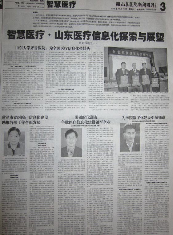 近日,山東醫(yī)院新聞周刊刊登了公司以“引領(lǐng)時代潮流 爭做醫(yī)療信息化建設(shè)領(lǐng)軍企業(yè)”為主題的報(bào)道。