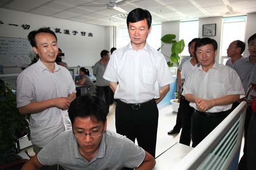 考察中,朱蘭璽市長在公司副總經(jīng)理張林的介紹下,對當(dāng)前公司在政府、醫(yī)療衛(wèi)生、建設(shè)、房管、金融、公安、教育等行業(yè)自主研發(fā)的軟件產(chǎn)品及主要承接的信息化項目做了詳細(xì)了解。當(dāng)了解到公司自主研發(fā)的建設(shè)施工圖審查系統(tǒng)已在國內(nèi)處于領(lǐng)先水平后,他說道:“這款軟件非常實用,當(dāng)前圖審單位信息化水平較低,審圖流程復(fù)雜且工作量大,軟件的應(yīng)用有效地規(guī)范了審圖流程,大大提高了工作效率,下一步要加大產(chǎn)品宣傳力度,把研發(fā)成果全面推廣出去”。同時,朱市長對公司自主研發(fā)的區(qū)域衛(wèi)生信息平臺、中小學(xué)教育技術(shù)裝備管理系統(tǒng)、組織部發(fā)展黨員管理系統(tǒng)、數(shù)字房管等產(chǎn)品給予了高度評價,要求公司要把握時機,加強高端人才的引進,加強產(chǎn)品宣傳與推廣,快速發(fā)展,進而帶動園區(qū)的全面發(fā)展。