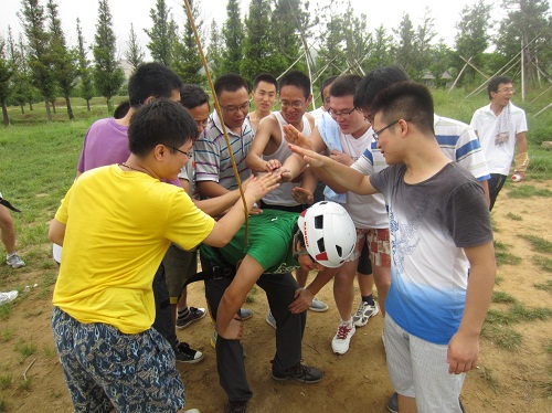 拓展中,大家相互配合,團(tuán)結(jié)協(xié)作,播撒激情,奉獻(xiàn)智慧。對于高空項(xiàng)目,雖然部分員工有恐高癥,但團(tuán)隊(duì)每位成員勇敢地攀登;特別是“畢業(yè)墻”要求每位成員在限定的時(shí)間內(nèi)翻過4.2米高的金屬墻體,團(tuán)隊(duì)成員的脊梁和手臂就是攀爬的“梯子”,通過大家的智慧和密切合作,我們在最短的時(shí)間完成任務(wù)。