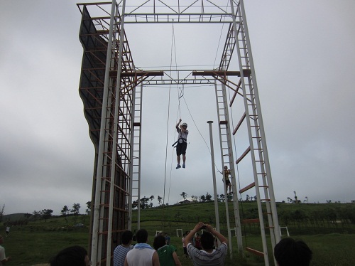 在三天的素質(zhì)拓展訓(xùn)練活動(dòng)中,我們在專業(yè)教練的帶領(lǐng)下,完成了盲人方陣、風(fēng)雨人生路、高空單杠、空中斷橋、畢業(yè)墻等以激發(fā)個(gè)人潛能、熔煉團(tuán)隊(duì)智慧的一系列新奇刺激、寓意深長的素質(zhì)拓展訓(xùn)練課程。
