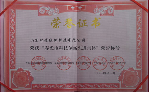 2014年1月16日,根據(jù)壽科協(xié)字[2014]1號文件,表彰了獲得2013年度壽光市科技創(chuàng)新優(yōu)秀成果、科技標(biāo)兵和科技創(chuàng)新先進(jìn)集體。其中,山東環(huán)球軟件科技有限公司(以下簡稱環(huán)球軟件)申報的“環(huán)球軟件快速開發(fā)平臺”,在眾多科技創(chuàng)新獎申報項目中脫穎而出,榮獲2013年度壽光市科技創(chuàng)新優(yōu)秀成果一等獎;環(huán)球軟件公司被評為“壽光市科技創(chuàng)新先進(jìn)集體”;公司副總經(jīng)理張林獲得“科技標(biāo)兵”榮譽稱號!