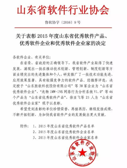 為進(jìn)一步貫徹落實(shí)國(guó)務(wù)院《關(guān)于印發(fā)進(jìn)一步鼓勵(lì)軟件產(chǎn)業(yè)和集成電路產(chǎn)業(yè)發(fā)展的若干政策的通知》(國(guó)發(fā)〔2011〕4號(hào))精神,加快我省軟件產(chǎn)業(yè)發(fā)展,提高在國(guó)內(nèi)外的知名度,表彰在推動(dòng)我省軟件產(chǎn)業(yè)發(fā)展中做出突出貢獻(xiàn)的先進(jìn)企業(yè)和個(gè)人,組織開(kāi)展“2015年度山東省優(yōu)秀軟件產(chǎn)品”、“2015年度山東省優(yōu)秀軟件企業(yè)”和“2015年度山東省優(yōu)秀軟件企業(yè)家”評(píng)選活動(dòng)。近日公布評(píng)選結(jié)果,其中山東環(huán)球軟件科技有限公司獲評(píng)“2015年度山東省優(yōu)秀軟件企業(yè)”。