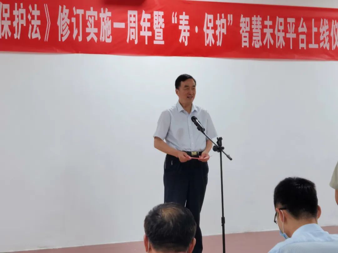 壽光市原政協(xié)主席、關(guān)工委主任王茂興宣布“壽·保護”智慧未保平臺正式上線運行,并宣布壽光市“喜迎二十大,同心護未來”主題宣傳活動啟動。
