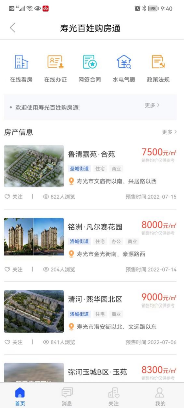 三是提供空間地理服務(wù),實(shí)現(xiàn)百姓購(gòu)房“場(chǎng)景化”。針對(duì)“百姓查詢購(gòu)房信息不方便”等系列問題,壽光市創(chuàng)新協(xié)同百姓購(gòu)房應(yīng)用場(chǎng)景,“百姓購(gòu)房通”平臺(tái)接入整合2.5維地圖、建設(shè)工程規(guī)劃、竣工驗(yàn)收等數(shù)據(jù)及開發(fā)商定期更新的工程現(xiàn)場(chǎng)照片,通過平臺(tái)“在線看房”模塊查詢了解全市所有審批備案房地產(chǎn)項(xiàng)目的規(guī)劃信息和項(xiàng)目預(yù)售許可證、竣工驗(yàn)收等證照信息,實(shí)時(shí)查看新建房地產(chǎn)項(xiàng)目規(guī)劃建設(shè)詳情和周邊配套設(shè)施布局、建設(shè)進(jìn)展,有效監(jiān)督規(guī)范開發(fā)商建設(shè)行為,讓百姓線上購(gòu)房更直觀、更放心。