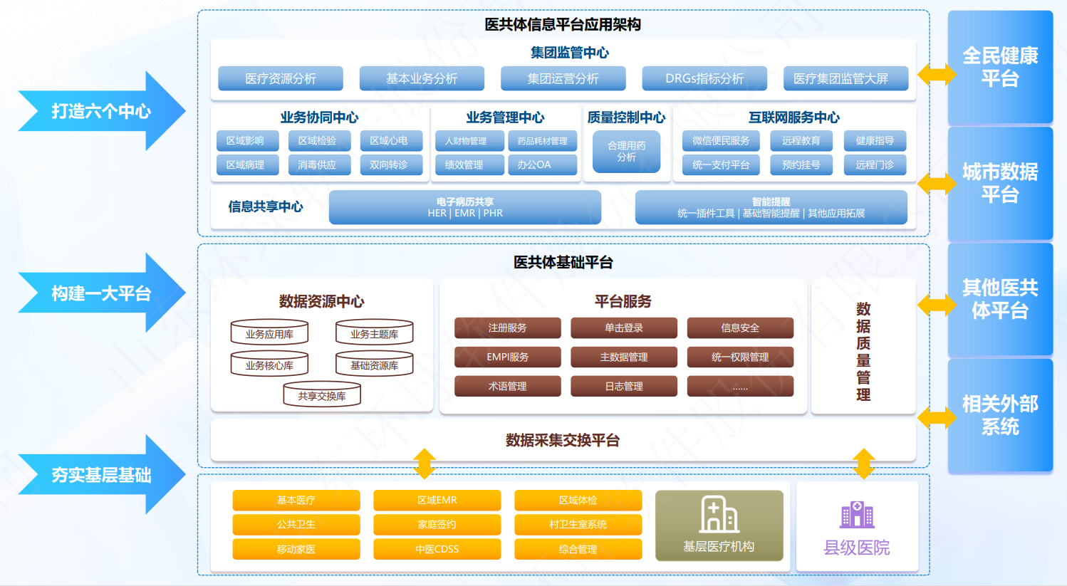 醫(yī)共體信息平臺(tái)有利于建立基于醫(yī)療健康大數(shù)據(jù)的監(jiān)測(cè)和預(yù)警體系加強(qiáng)醫(yī)療健康大數(shù)據(jù)應(yīng)用體系建設(shè),采集和匯聚健康醫(yī)療大數(shù)據(jù),加快推進(jìn)統(tǒng)一權(quán)威、互聯(lián)互通、高效實(shí)用、安全可靠的區(qū)域“互聯(lián)網(wǎng)+醫(yī)療健康”平臺(tái)建設(shè),規(guī)范健康醫(yī)療信息建設(shè)標(biāo)準(zhǔn)、技術(shù)規(guī)范和工作機(jī)制。動(dòng)態(tài)掌握衛(wèi)生資源,監(jiān)管醫(yī)療衛(wèi)生服務(wù),并利用平臺(tái)上收集的醫(yī)療數(shù)據(jù)和公衛(wèi)數(shù)據(jù)進(jìn)行分析,為科學(xué)管理和決策提供支撐。支撐“大健康”“大衛(wèi)生”建設(shè),依托大數(shù)據(jù)聯(lián)合其他行政管理部門,開(kāi)展部門協(xié)作,提升政府突發(fā)公共衛(wèi)生事件應(yīng)急管理綜合保障能力。