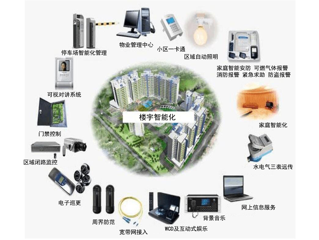 樓宇智能化系統(tǒng)一般包括以下系統(tǒng):綜合布線系統(tǒng)、計(jì)算機(jī)網(wǎng)絡(luò)系統(tǒng)、電話系統(tǒng)、有線電視及衛(wèi)星電視系統(tǒng)、安防監(jiān)控系統(tǒng)、一卡通系統(tǒng)、廣播告示系統(tǒng)、樓宇自控系統(tǒng)、酒店管理系統(tǒng)、物業(yè)管理系統(tǒng)、智能樓宇管理系統(tǒng)(集控平臺(tái))及數(shù)據(jù)中心機(jī)房建設(shè)等。樓宇智能化的基本要求是辦公設(shè)備自動(dòng)化、智能化,通信系統(tǒng)高性能化,建筑柔性化,建筑管理服務(wù)自動(dòng)化。
